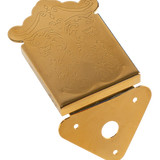 Mandolin Tailpiece with engraved scroll edge cover plate. Gold